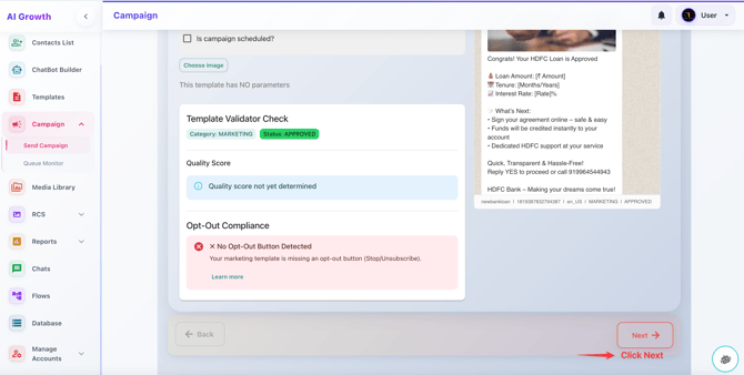 If it Marketing template compulsory needs a negative button require otherwise This is OPT-OUT COMPLIANCE Warning will display